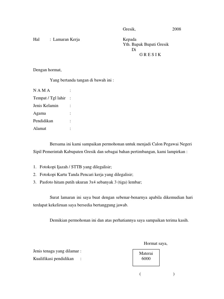 Agar lolos seleksi administrasi, pastikan semua data yang diunggah atau dibuat adalah benar adanya dan sesuai dengan faktanya. Contoh surat lamaran kerja, contoh surat permohonan, contoh surat undangan, contoh surat kuasa, contoh surat keterangan format doc terbaru. Contoh surat lamaran kerja cpns. Dokumen surat lamaran doc & pdf. 15 contoh cv curriculum vitae daftar riwayat hidup terlengkap. Contoh surat lamaran kerja cpns bidan pontianak, nopember 2010 kepada yth. Contoh surat lamaran bidan ptt ini tersimpan di google drive dan saat anda mendownload menggunakan link di. Besar harapan saya untuk diterima sebagai tenaga ahli bidan di rsud. Berikut contoh surat lamaran pekerjaan yang bisa kamu download file dokumennya juga, link di bagian akhir artikel. Contoh surat lamara kerja cpns daerah. Pendaftaran cpns 2018 sudah dibuka, saatnya menyiapkan. Berikut kami berikan beberapa contoh surat lamaran. Diii/agribisnis kesehatan hewan dengan ini saya mengajukan permohonan lamaran bekerja calon pegawai negeri sipil tahun 2014 di lingkungan kementerian pertanian republik indonesia.